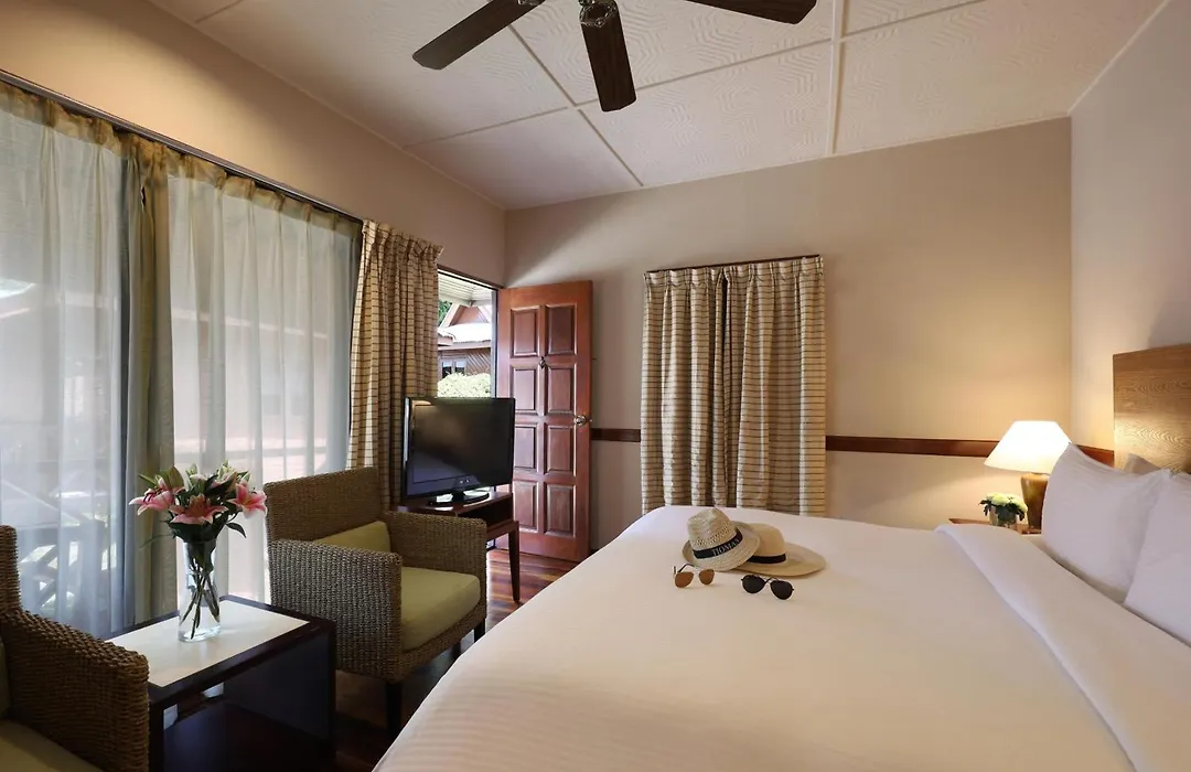 The chalets at Berjaya Tioman Resort feature traditional Malay wood decor and air conditioning. Guests can enjoy private balconies with views of the garden or sea, as well as flat-screen TVs, minibars, and free Wi-Fi. The two-bedroom Garden Chalets cater to families or groups seeking more space.
