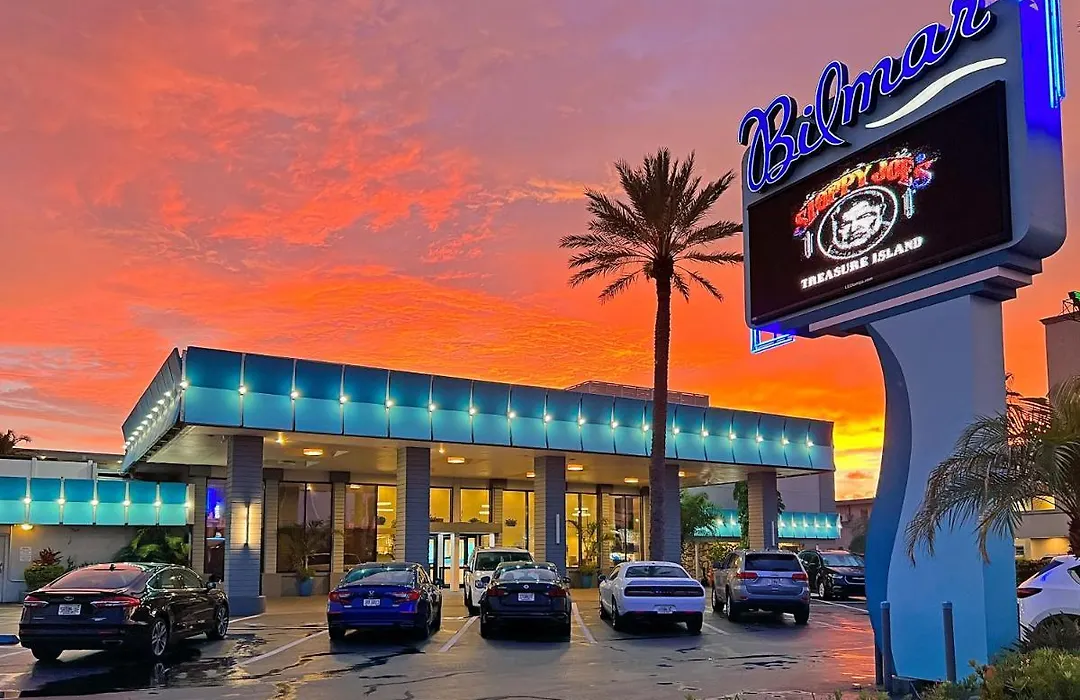 On-site dining includes Sloppy Joe's, offering fresh seafood and nightly live music, along with the Bilmar Beach Café. Each restaurant features outdoor seating with views, enhancing the dining experience with casual beach vibes. Guests can enjoy food and drink specials, with breakfast and dinner served daily.