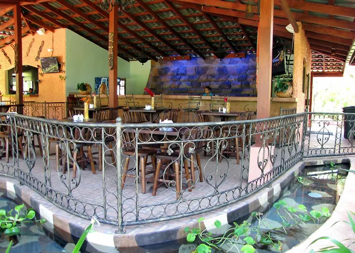 The resort is situated along the north base of Rincon de la Vieja National Park, featuring nearby eco-adventures such as zip-lining and nature hikes. The Blue River flows nearby, enhancing outdoor exploration options for guests.
