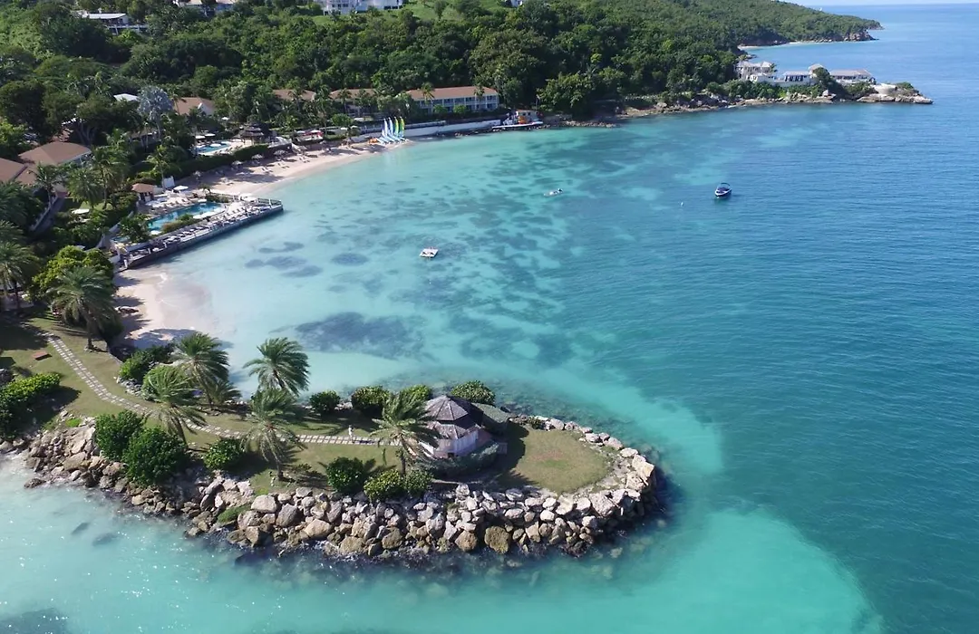 Blue Waters Resort And Spa is a 5-star property rated 8.6/10 on Booking.com, featuring a private bay with access to three secluded beach coves and over 17 acres of tropical gardens. The resort provides a range of amenities including four bars, three restaurants, and activities like non-motorized water sports and a fitness center.