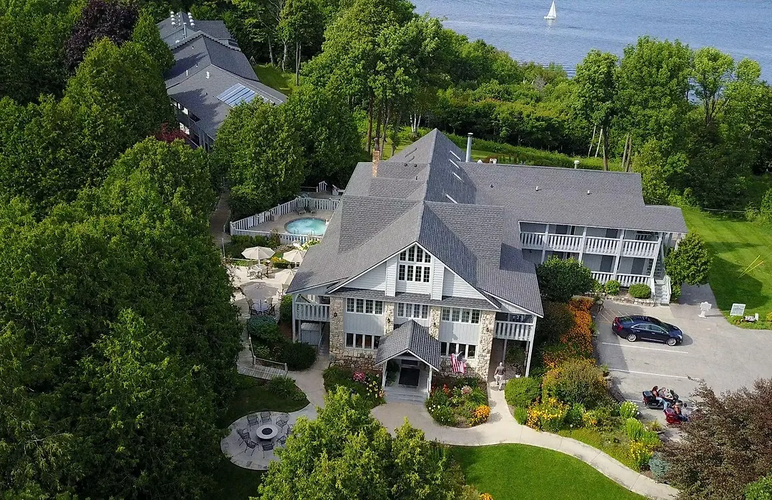 Accommodations at Country House Resort include 46 rooms and suites with options like King Water View rooms and the one of a kind Penthouse Suite. Most rooms feature private water view balconies, allowing guests to enjoy picturesque sights of Sister Bay along with amenities such as gas fireplaces and two-person whirlpools.