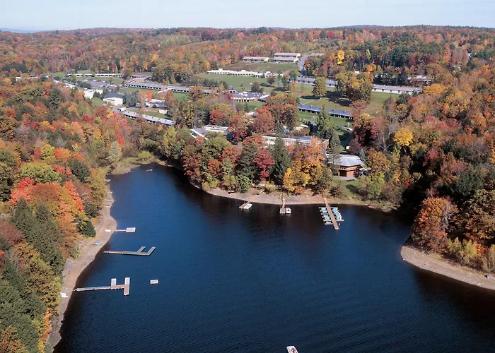 Cove Haven Resort, a 3-star Lakeville hotel with an 8.0/10 rating on Booking.com, blends romance and recreation on the shores of Lake Wallenpaupack. The property offers a range of accommodations designed for romantic getaways, including iconic heart-shaped hot tubs and a variety of on-site dining and entertainment options.