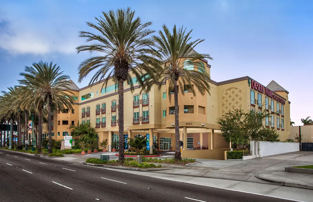 Desert Palms Hotel & Suites Anaheim Resort is a family-friendly accommodation featuring spacious rooms and suites, a heated outdoor pool, and a hot buffet breakfast. Rated 8.8/10 on Booking.com, this 3-star hotel is situated across from the Anaheim Convention Center.