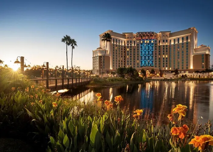 Disney'S Coronado Springs Resort offers convenient transportation options, including bus stations nearby. Orlando International Airport is approximately 20 miles away, making travel accessible for guests. Nearby landmarks include Disney's Fantasia Gardens Miniature Golf Course and Star Wars Launch Bay.