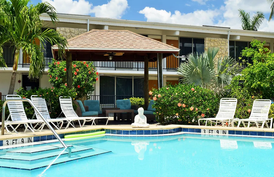 Dolphin Key Resort - Cape Coral, a 3-star hotel with an 8.3/10 Booking.com rating, provides an affordable getaway in the heart of the Cape Coral Entertainment District. The resort features over 100 renovated guest rooms, a luxury heated pool, and the popular Tiki Hut Bar & Grill. Guests can enjoy live entertainment and daily food and drink specials on-site.