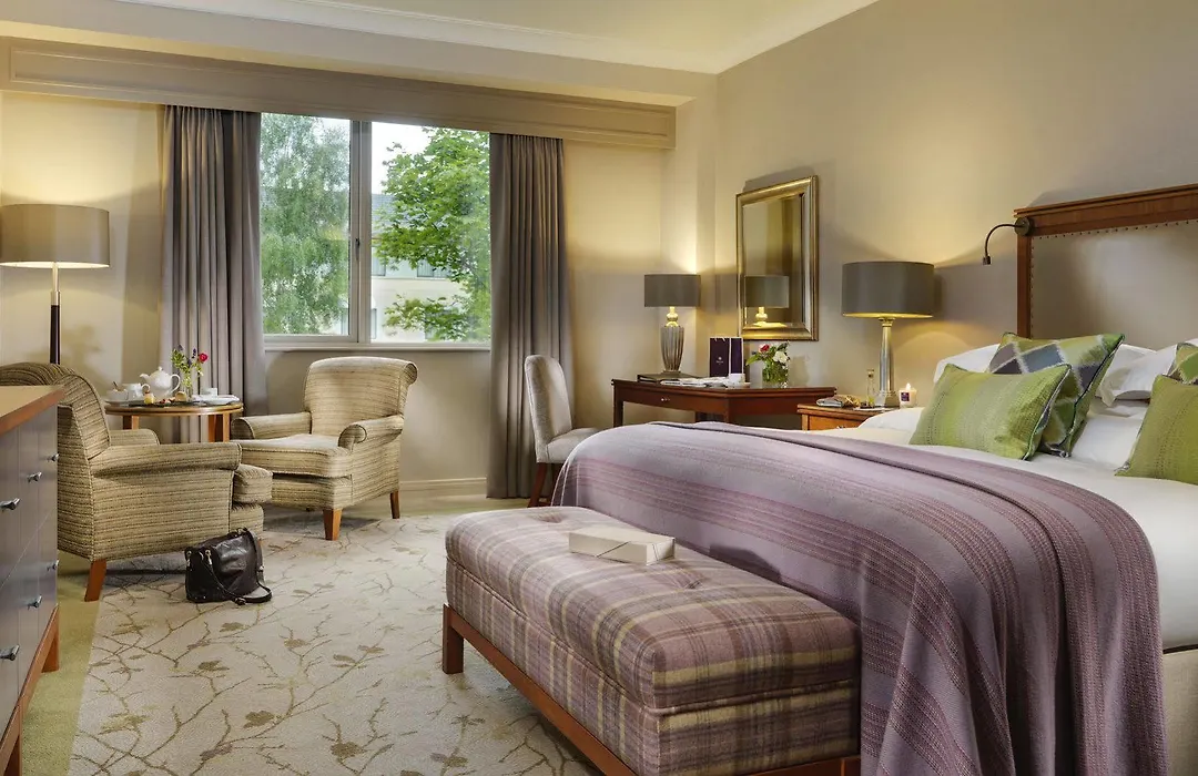 Druids Glen Resort offers 145 spacious guestrooms and suites, each designed to reflect the natural beauty of the surrounding landscape. Guests can enjoy amenities such as Nespresso machines, complimentary WiFi, and flat-screen TVs. The hotel features family-friendly accommodations with options that include interconnecting rooms for larger families.