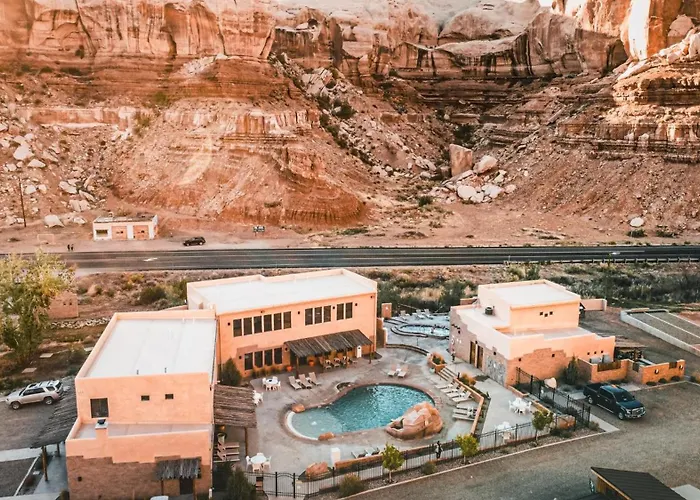 Bluff Dwellings Resort, a 3-star property rated 9.2/10 on Booking.com, offers luxury rooms inspired by Ancient Puebloan architecture amidst stunning sandstone cliffs. Amenities include HóZhó Spa, an outdoor pool, and The Cedar Shack Café featuring regional cuisine.