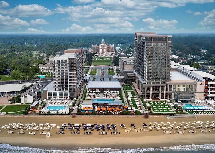 The resort offers leisure activities like beach yoga and sunrise meditation. The Virginia Beach Fishing Pier is 1.9 miles away, and local attractions include First Landing State Park and iFly Indoor Skydiving, both less than 5 miles distant.