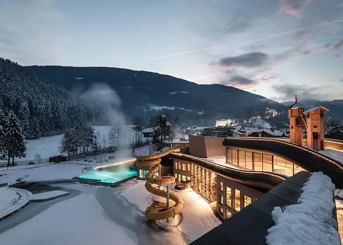 Falkensteiner Family Resort Lido Superior (4-star) features a unique rooftop Sky Adventure Park, an extensive Aquapura spa area, and family-friendly amenities tailored for all ages. The Chienes hotel, rated 9.2/10 on Booking.com, offers an indoor and outdoor pool complex along with a year-round ski slope.