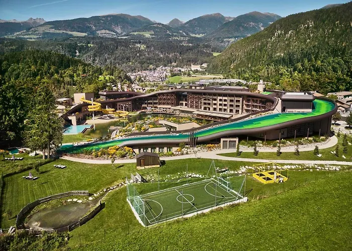 Falkensteiner Family Resort Lido provides extensive leisure facilities, such as the indoor water world featuring the longest indoor water slide in South Tyrol, a spa area, outdoor pools, and a natural lake. Outdoor activities include hiking trails and winter sports, facilitated by the hotel's ski shuttle service.