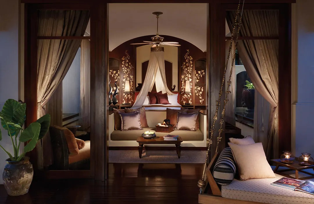 Accommodations at Four Seasons Resort Chiang Mai include 98 spacious pavilions and private villas, each offering stunning views of the rice fields and mountains. The Upper Rice Terrace Pavilions come with vaulted ceilings and private outdoor Thai salas. Guests can opt for a Two-Bedroom Residence, which features expansive open lounges and private outdoor areas.