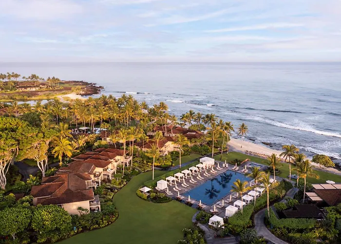 Four Seasons Resort Hualalai (5-star, 9.5/10 Booking.com rating) offers an exceptional beachfront experience on the Big Island with luxurious accommodations and a variety of on-site amenities. This Kaupulehu hotel includes a renowned golf course, expansive pools, and a focus on sustainability and local culture.