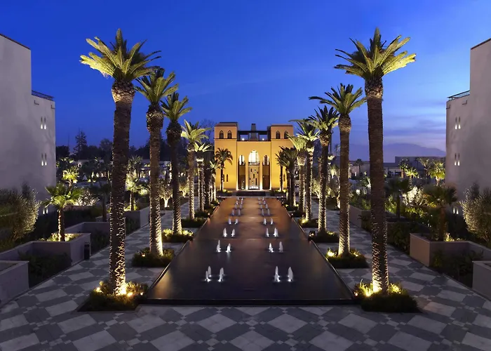 Four Seasons Resort Marrakech (5-star, 9.2/10 on Booking.com) features 40 acres of lush gardens and multiple pools alongside luxurious accommodations with private terraces. This family-friendly resort includes a Moroccan spa, kids' club, and a selection of on-site dining options.