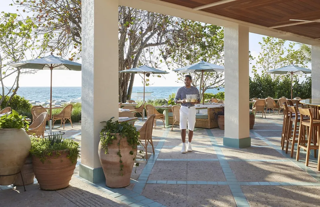 Dining options include Florie's, offering Mediterranean-inspired cuisine with live-fire cooking and ocean views, and Seaway, a casual seaside restaurant focusing on seafood. In-room dining is also available for those who prefer a private meal experience.