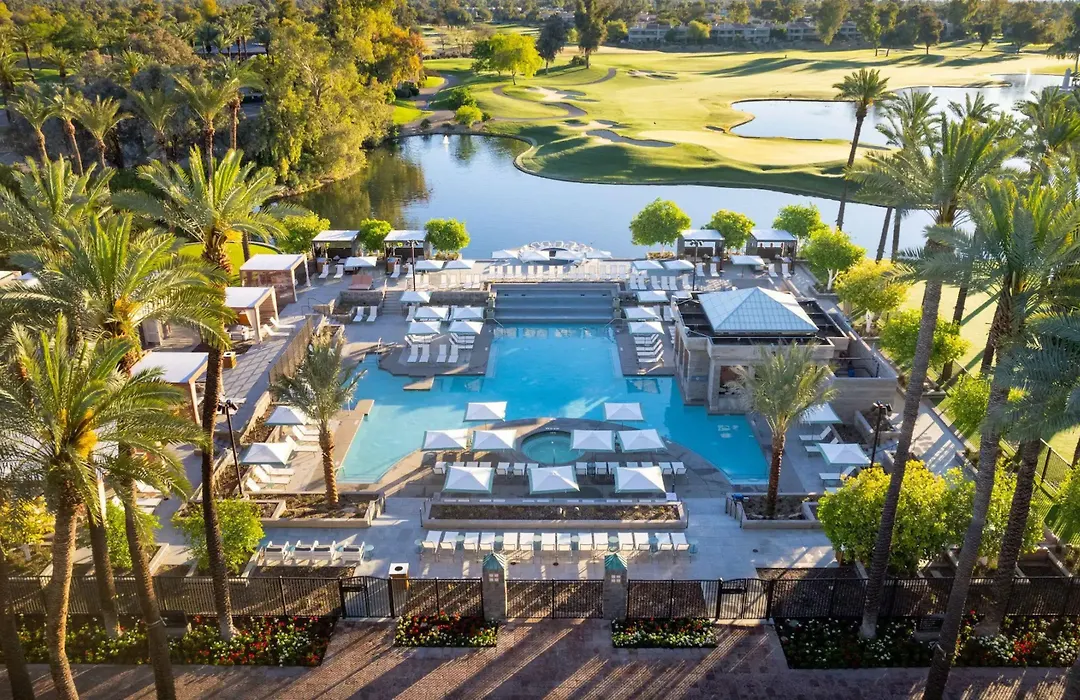Grand Hyatt Scottsdale Resort, rated 8.1/10 on Booking.com, is a 5-star resort featuring a 2.5-acre water playground and a full-service spa. This Scottsdale hotel offers various leisure and dining options, catering to families and guests seeking relaxation.