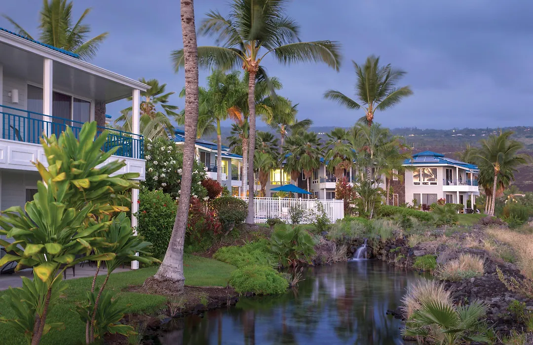 Accommodations at Holua Resort are designed with a Hawaiian flair, featuring fully equipped kitchens, private lanais, and laundry facilities. Rooms include a mix of king beds and twin beds, accommodating up to 6 guests.