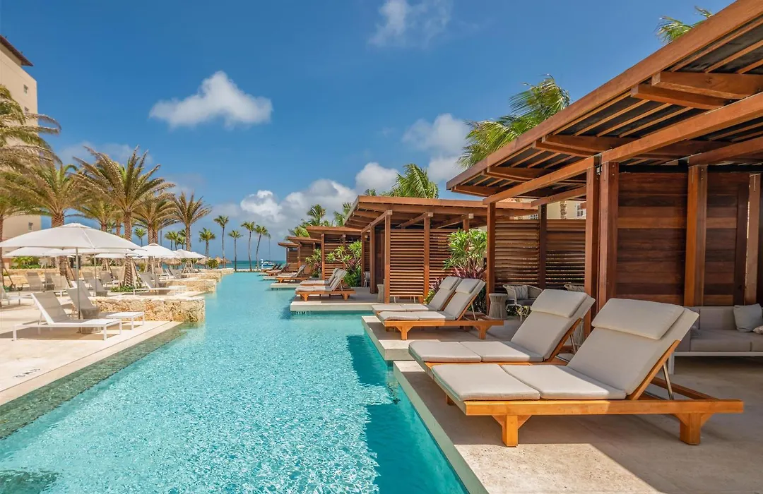 Hyatt Regency Aruba Resort & Casino features a luxurious beachfront setting with an 8000-square-foot Activity Pool, a full-service spa, and gourmet dining options. This family-friendly and casino hotel provides various amenities, ensuring a diverse experience for guests.