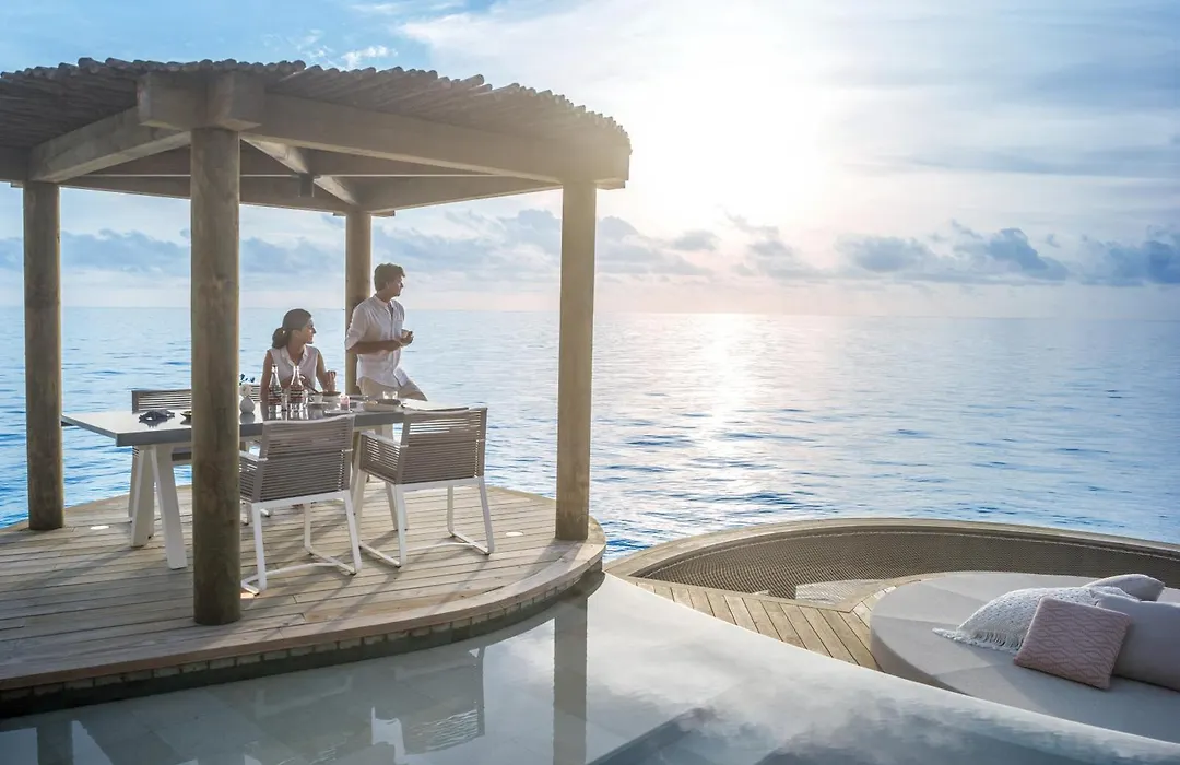 The resort provides a variety of spacious accommodations, including Two and Three-Bedroom Residences and Overwater Pool Villas with private infinity pools and breathtaking ocean views. Each villa features open-plan bathrooms and luxurious amenities such as outdoor showers and modern entertainment systems.