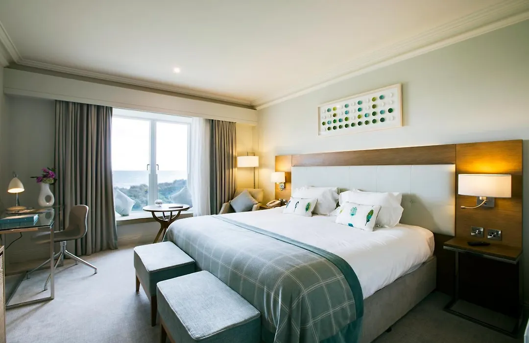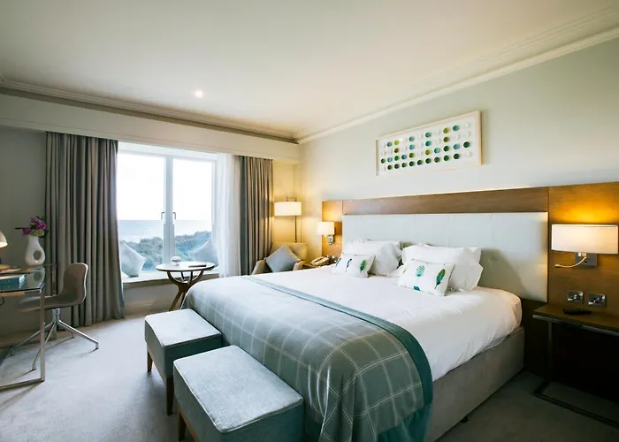 Portmarnock Resort & Jameson Golf Links (4-star) boasts picturesque views of sandy beaches and a championship golf course, ideal for leisure and sports enthusiasts. Guests have access to an on-site spa, fitness center, and multiple dining options. Rated 8.5/10 on Booking.com, this portmarnock hotel offers modern amenities in a serene setting.