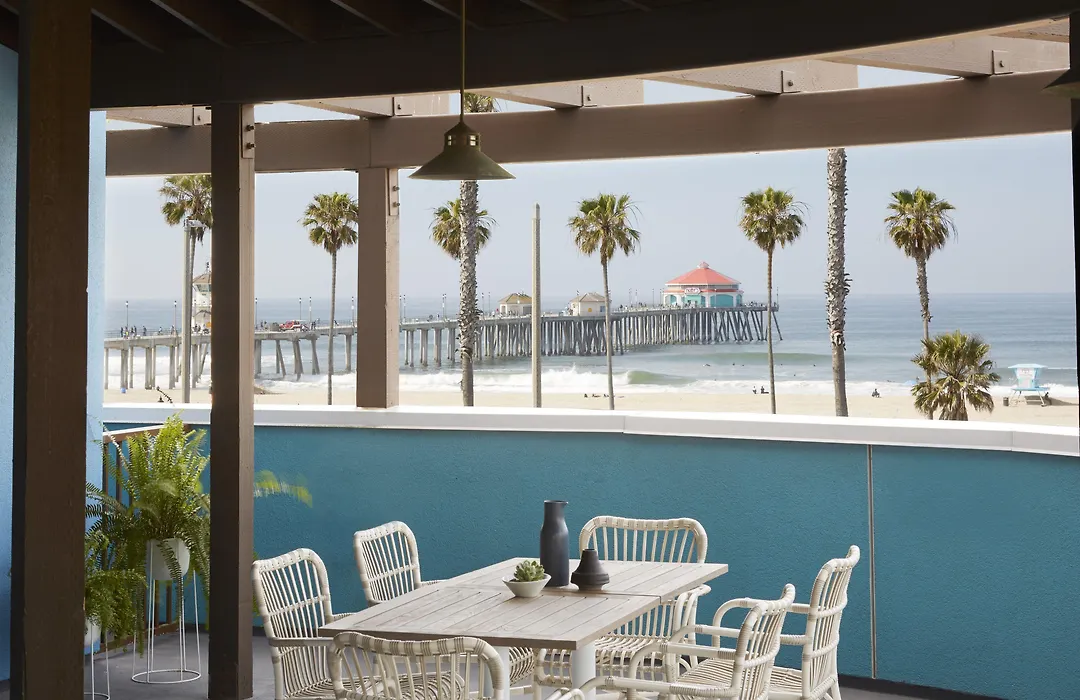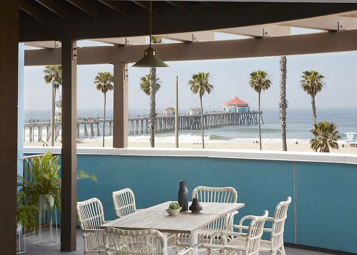 Kimpton Shorebreak Huntington Beach Resort, An Ihg Hotel is a 4-star beachfront property offering elegant accommodations and a vibrant atmosphere in Surf City, USA. Guests can enjoy a variety of dining options, including Pacific Hideaway, and a lively outdoor courtyard with fire pits and custom cocktails.
