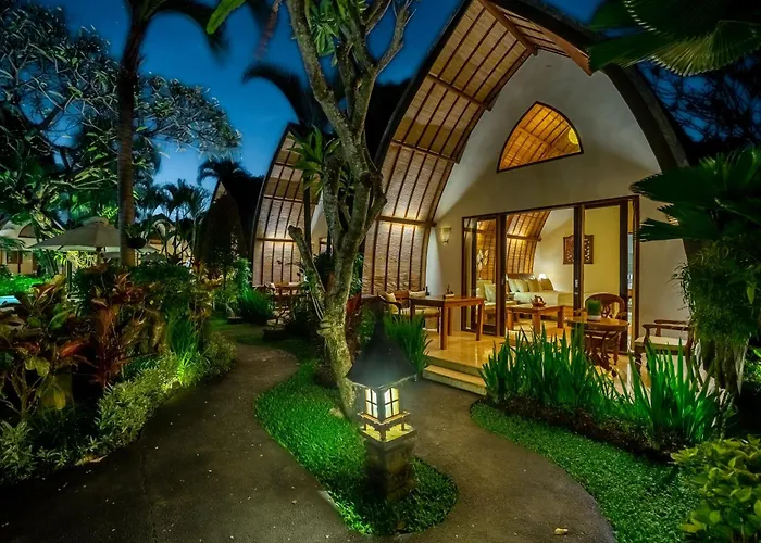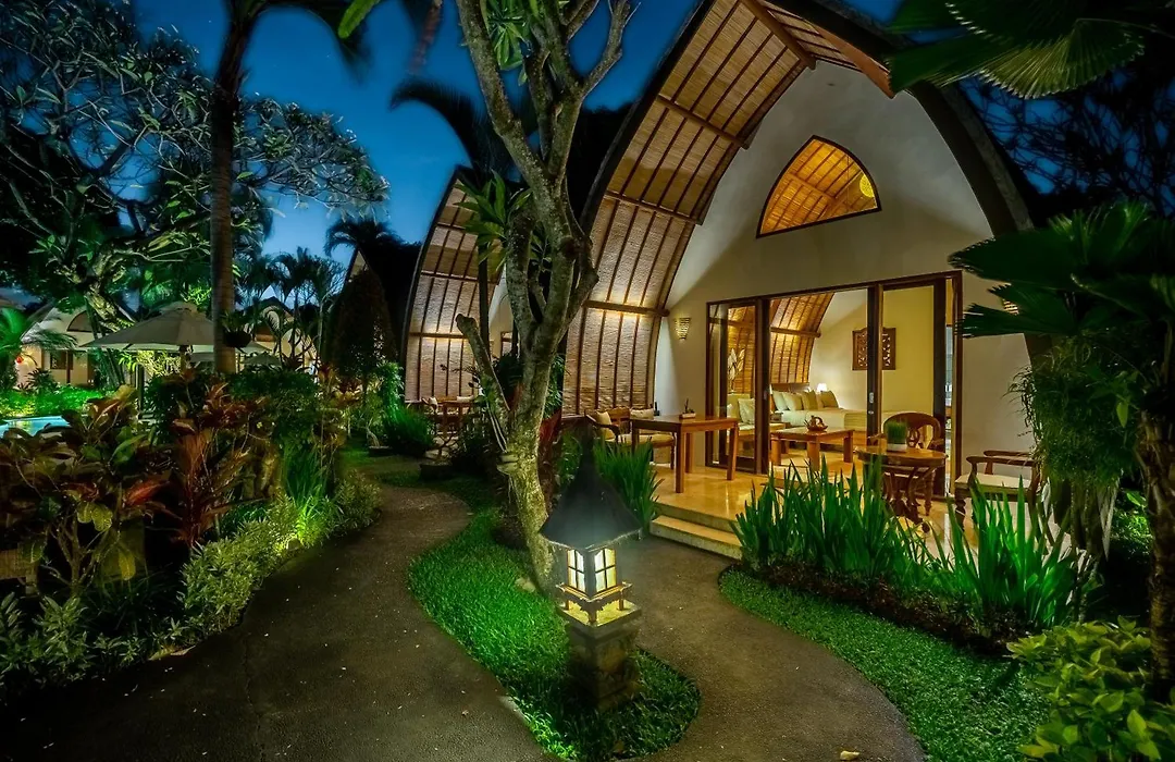 Klumpu Bali Resort is a 4-star boutique hotel offering luxury loft-style cabins with private terraces set in lush gardens. The property features a freeform pool and an in-house restaurant specializing in fresh seafood and Balinese cuisine. Rated 9.6/10 on Booking.com, this Sanur (Bali) hotel combines traditional Balinese village charm with contemporary design.