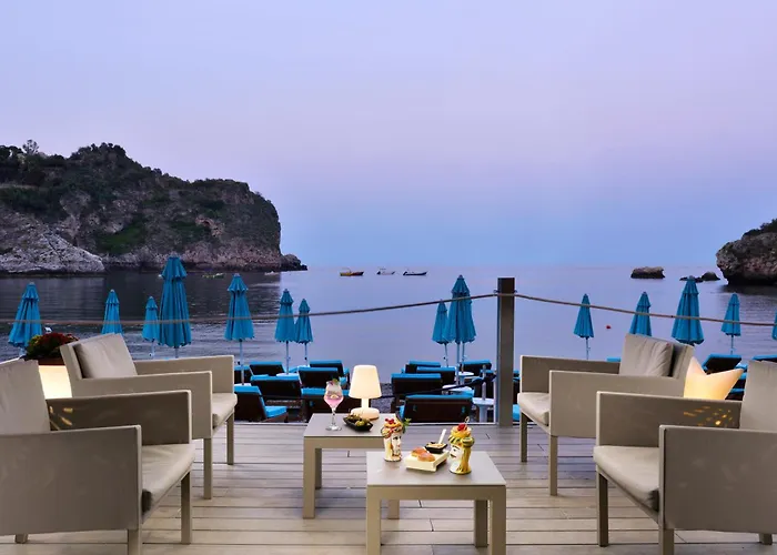 La Plage Resort, a 5-star Taormina hotel, features stunning views of the bay and Mount Etna, the highest active volcano in Europe. This eco-friendly hotel is surrounded by maritime pines and fragrant gardens, offering various amenities including beach services and an indoor car park.