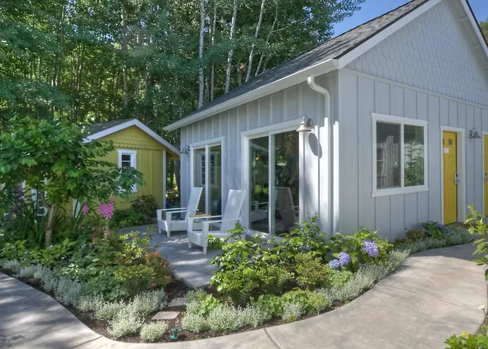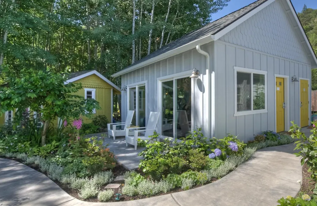 Accommodations at Lithia Springs Resort include studios, bungalows, and suites, each designed for comfort. Many units feature private soaking tubs filled with mineral water, flat-screen TVs, and fireplaces.