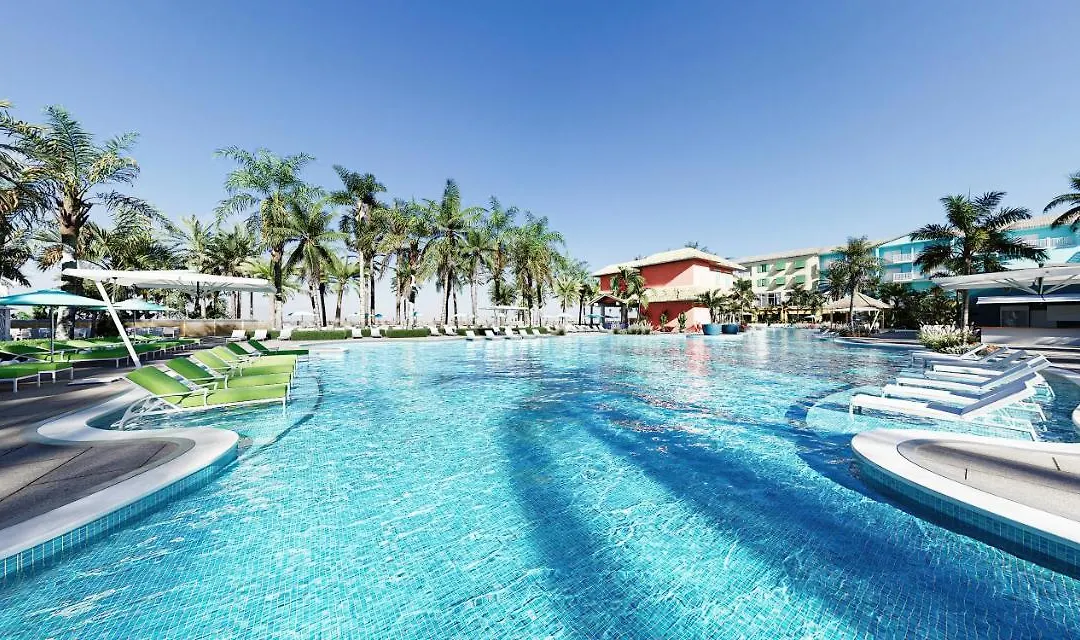 The resort includes a state-of-the-art fitness center and the expansive Fins Up! Beach Club, which features a lagoon-style pool, live entertainment, and beach access. Guests can enjoy recreational activities such as biking, beach walks, and water sports.
