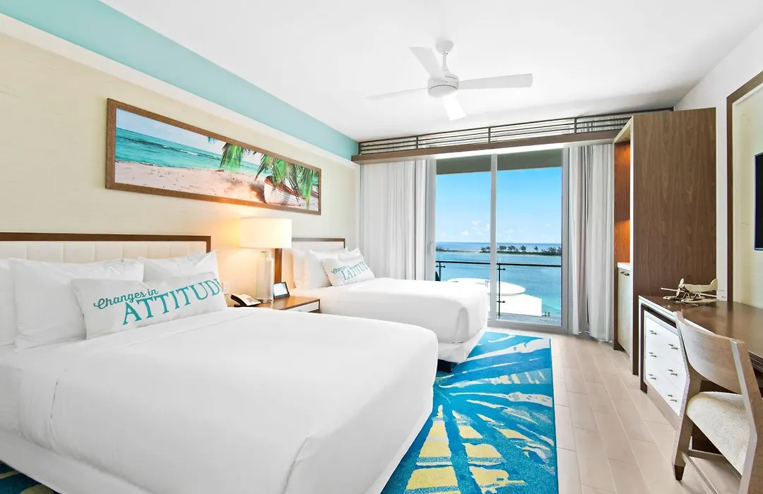 Rooms at Margaritaville Beach Resort Nassau include air conditioning, flat-screen TVs, and options with full kitchens for added convenience. Accommodations range from guest rooms to luxury residences, providing spaces designed for relaxation with views of the Caribbean.