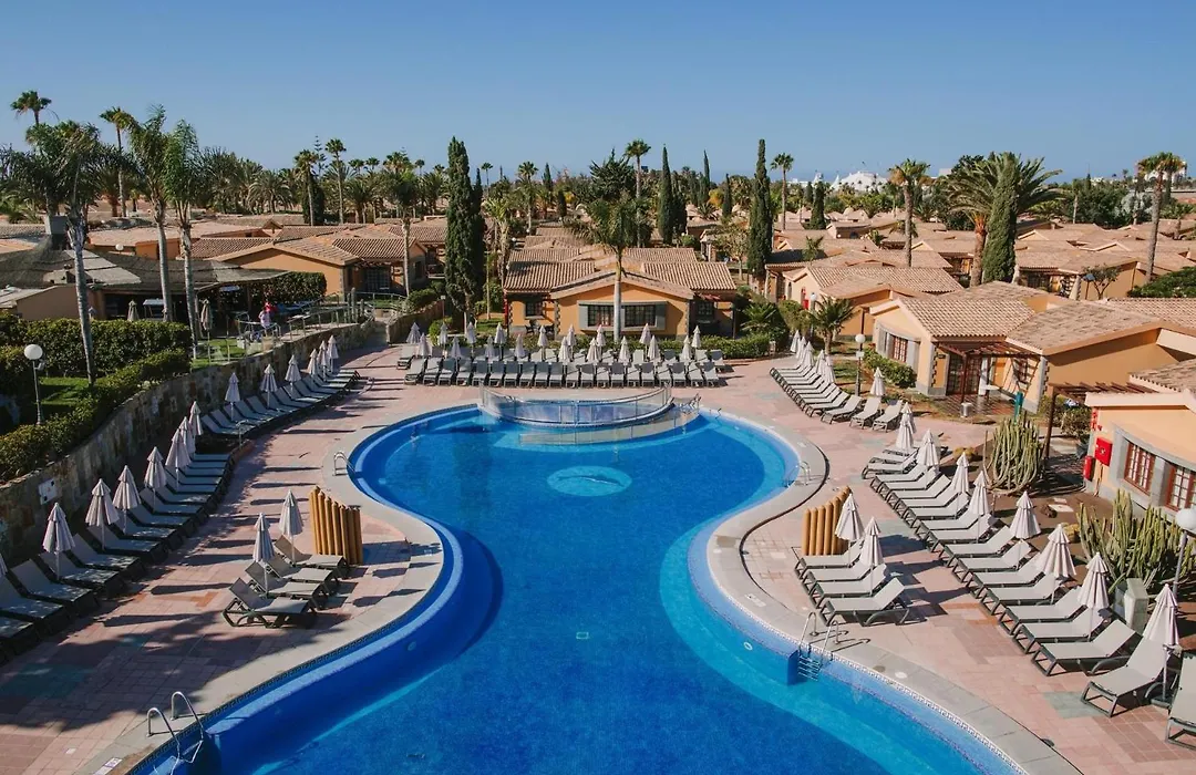 Maspalomas Resort By Dunas, a 4-star hotel with an 8.8/10 rating, offers spacious bungalows surrounded by lush gardens and pools, perfect for families and groups. Amenities include a miniclub, food truck, and wellness center.