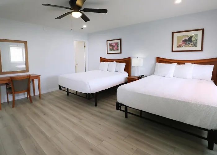 The Matador Oceanfront Resort offers 62 guest rooms and two suites designed for families and groups. Options include rooms equipped with two queen beds or double beds with a queen sofa bed, all featuring flat-screen TVs and kitchenettes.