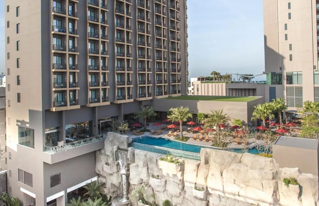 Mercure Pattaya Ocean Resort, a newly built 4-star hotel, offers direct beach access and a family-friendly atmosphere. Guests can enjoy a mini water park, diverse dining options, and a business center. The hotel features 210 air-conditioned rooms and suites designed for both leisure and corporate travelers.