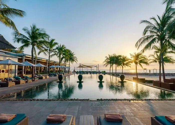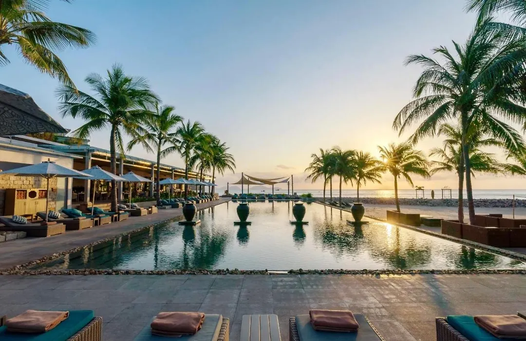 Mia Resort Nha Trang, a 5-star beachfront villa resort, offers private pools and luxury amenities in a picturesque setting. With a Booking.com rating of 9.5/10, it is well-regarded for its environmental focus and ample outdoor spaces.