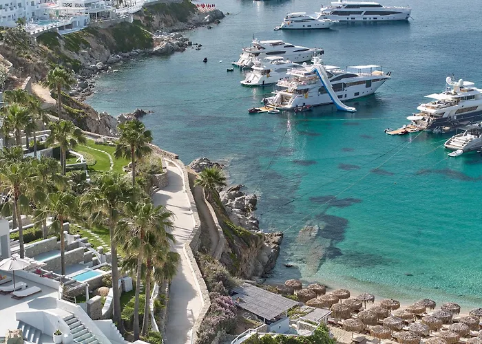 Shuttles to Mykonos Town, approximately 3 miles away, run hourly for convenient exploration of the area. The resort is located near popular landmarks such as the iconic windmills and the vibrant nightlife of Mykonos.