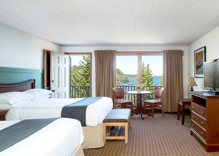 The resort offers a broad range of activities, including tennis and basketball courts, a fire pit, and bikes to explore the scenic surroundings. Notable nearby attractions include the Coastal Maine Botanical Gardens and various lighthouse tours.