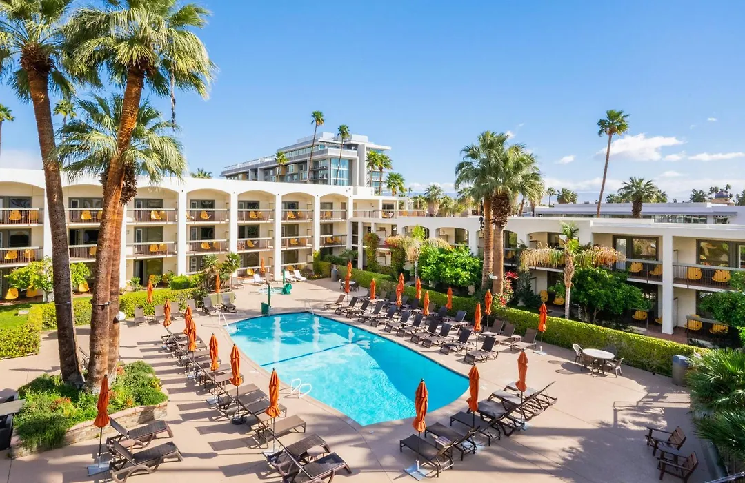 Relax by the newly renovated pool with a sunning terrace and misters for cooling. Additional leisure options include a full-service health and wellness center located two blocks away, as well as golf and outdoor activities in nearby regional attractions like Joshua Tree National Park.