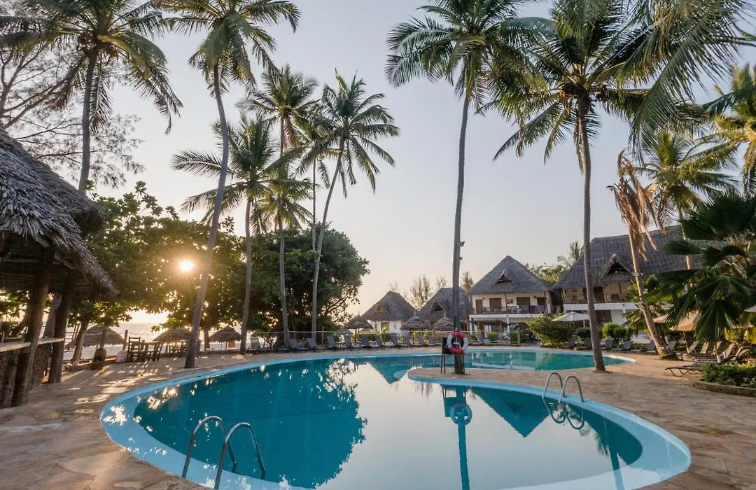 Accommodations at Paradise Beach Resort include various room types, each featuring modern amenities and African decor. Rooms can accommodate different guest configurations, including family rooms with bunk beds and suites with ocean views.