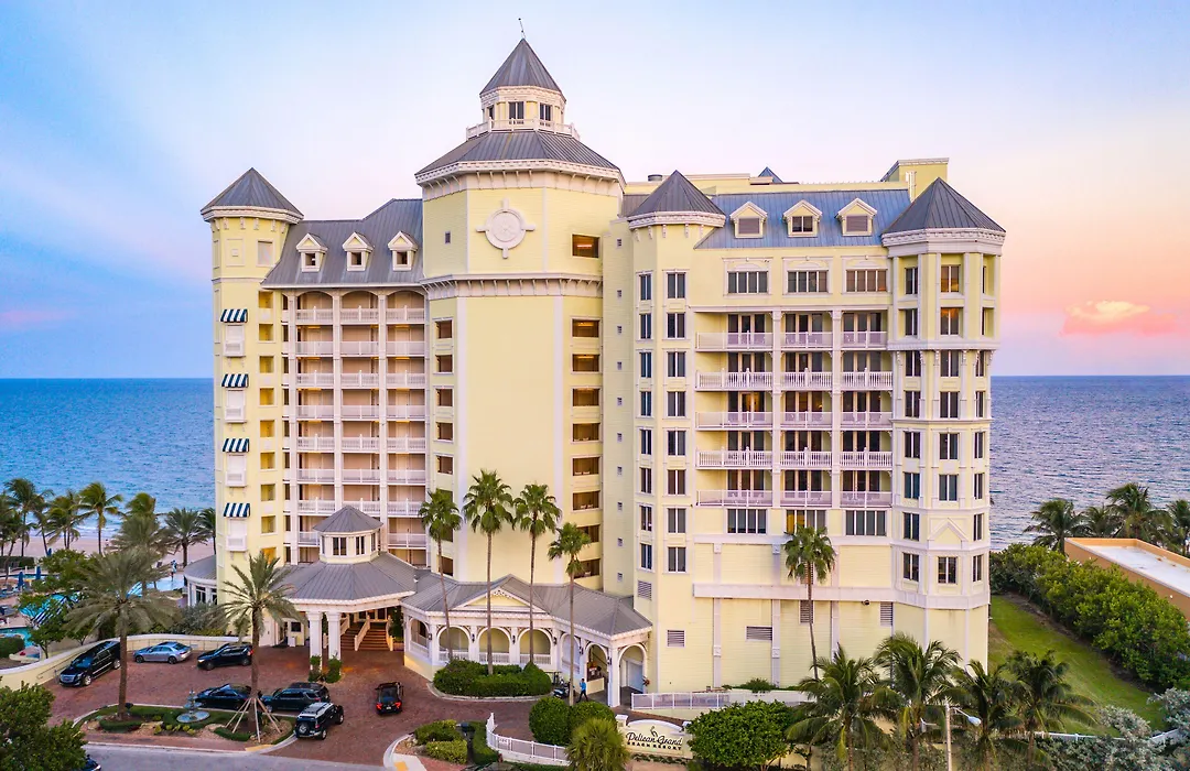 Pelican Grand Beach Resort, A Noble House Resort is a 4-star beachfront hotel featuring a 500-foot private beach and a Lazy River. This luxury resort offers modern amenities, on-site dining including OCEAN2000 and O2K Lounge, along with the rooftop PURE Spa for relaxation.