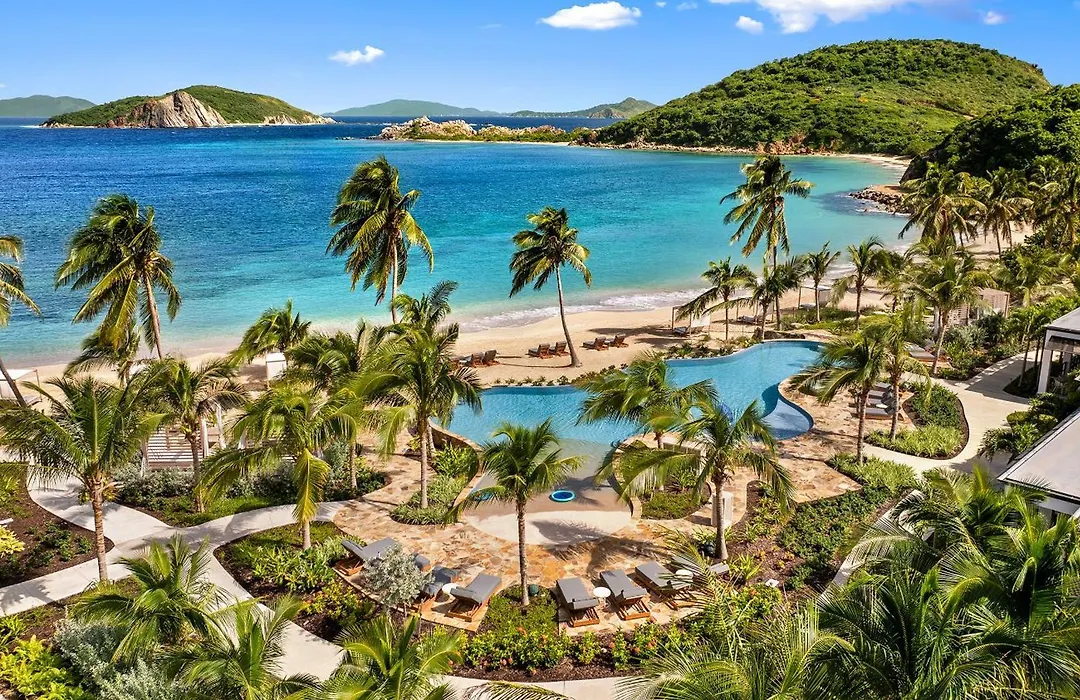 Peter Island Resort, a 5-star luxury destination, offers five pristine white sand Caribbean beaches and a vast 10000-square-foot spa. Dining options include the legendary Tradewinds Gala Buffet, highlighting Caribbean specialties. Guests can also enjoy beachfront access and water sports through Paradise Watersports.