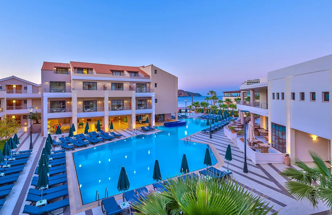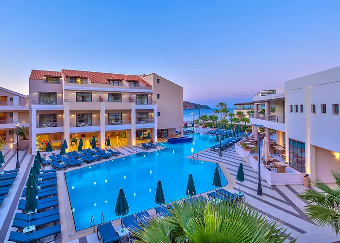 Porto Platanias Beach Resort & Spa offers a beachfront environment with views of the Cretan Sea and Agii Theodori. This 5-star Platanias hotel features extensive facilities including a health and fitness center, three restaurants, and five large swimming pools.