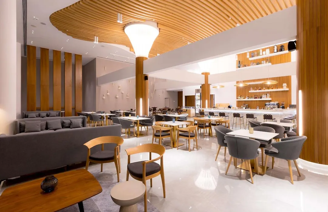 Radisson Beach Resort Larnaca offers 5-star accommodations with direct seafront access, outdoor swimming pool, and a wellness center. The hotel features a kids' club and various dining options, prioritizing comfort and leisure for families and business travelers alike.