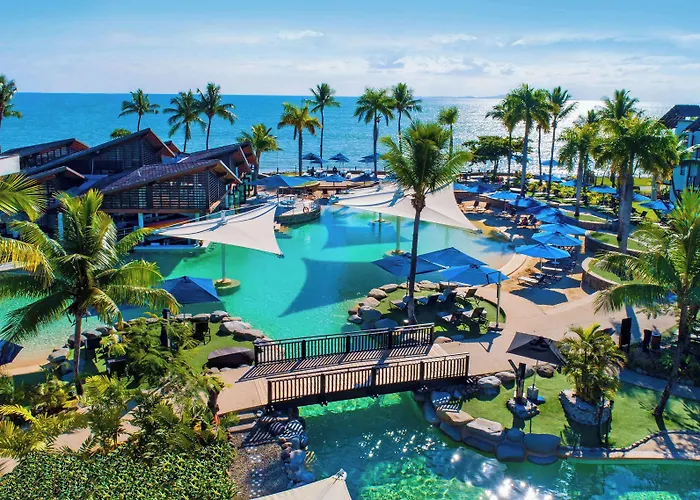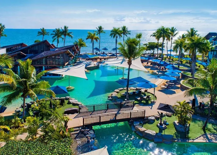 Radisson Blu Resort Fiji offers a blend of luxury and family-friendly amenities set in a tropical paradise. The 5-star resort features a Grand Pool Complex, six restaurants, and easy access to outdoor activities. It has an 8.4/10 rating on Booking.com.