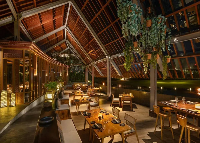 Dining options at the resort include four restaurants and a coffee shop, featuring local and international cuisine. Notable venues include Backstage for a buffet and Nusantara by Locavore for authentic Indonesian fare. Guests can also visit Lion X for Cantonese and Szechuan dishes.