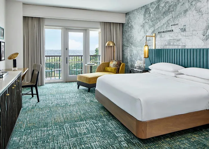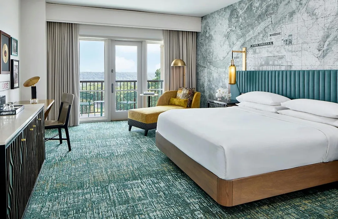 Rooms at Renaissance Shoals Resort & Spa include amenities such as air conditioning, flat-screen TVs, and coffee-making facilities. Some rooms provide balconies with views of the Tennessee River, ensuring a comfortable environment for rest and relaxation.