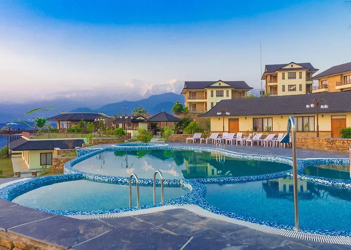 Rupakot Resort, a 4-star establishment rated 8.5/10 on Booking.com, spans 25 acres on the hills of Rupakot, Kaski, offering stunning views of Begnas, Rupa, and Fewa lakes. This Pokhara hotel caters to outdoor enthusiasts with a variety of hiking trails and provides a serene escape surrounded by nature.