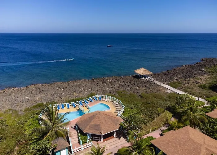 Seagrape Plantation Resort & Dive Center offers 22 air-conditioned rooms, comprising oceanfront cabins and standard hotel rooms with simple interiors. Each accommodation provides a fridge, free bottled water, and access to a shared patio, ensuring convenience for all guests.