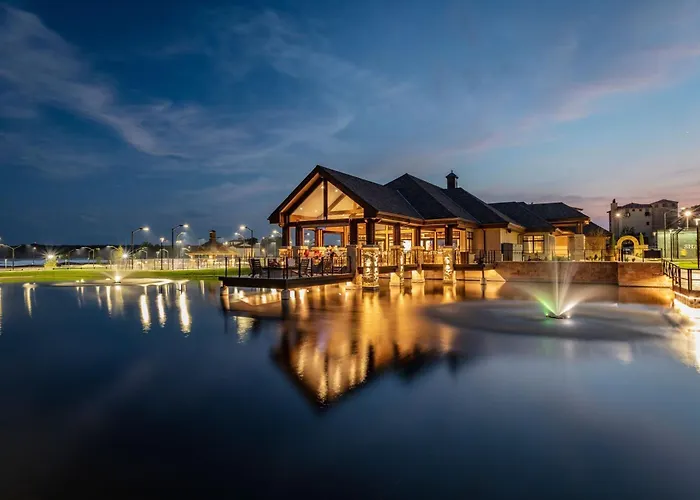 Leisure activities at Shangri-La Resort include access to two golf courses, a full-service spa, and a family-friendly activity park featuring a splash pad and playground. The resort also offers boat rentals for exploring Grand Lake, ensuring outdoor recreational opportunities.