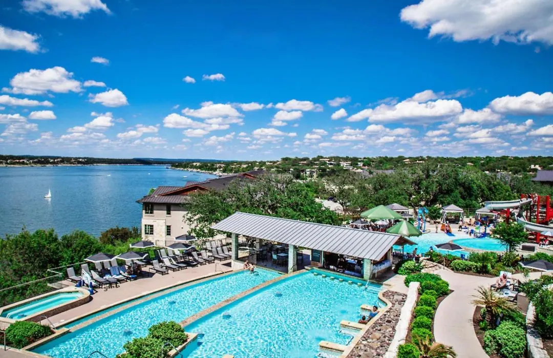 Leisure activities include three outdoor pools-one designated for adults-with an adventure water slide for children. The boutique spa offers various treatments such as massages and body therapies, while nearby attractions feature championship golf courses and access to Lakeway Marina for boating and water sports.