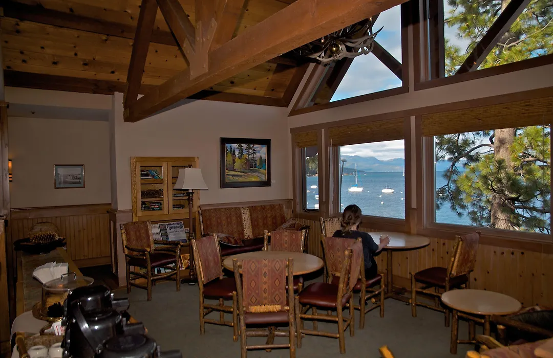 The lodge facilitates events with spaces that overlook Lake Tahoe and offers services for meetings and retreats. The TART bus stops nearby for convenient transportation, and numerous local landmarks, including the Tahoe Maritime Museum, are within 1.9 miles.