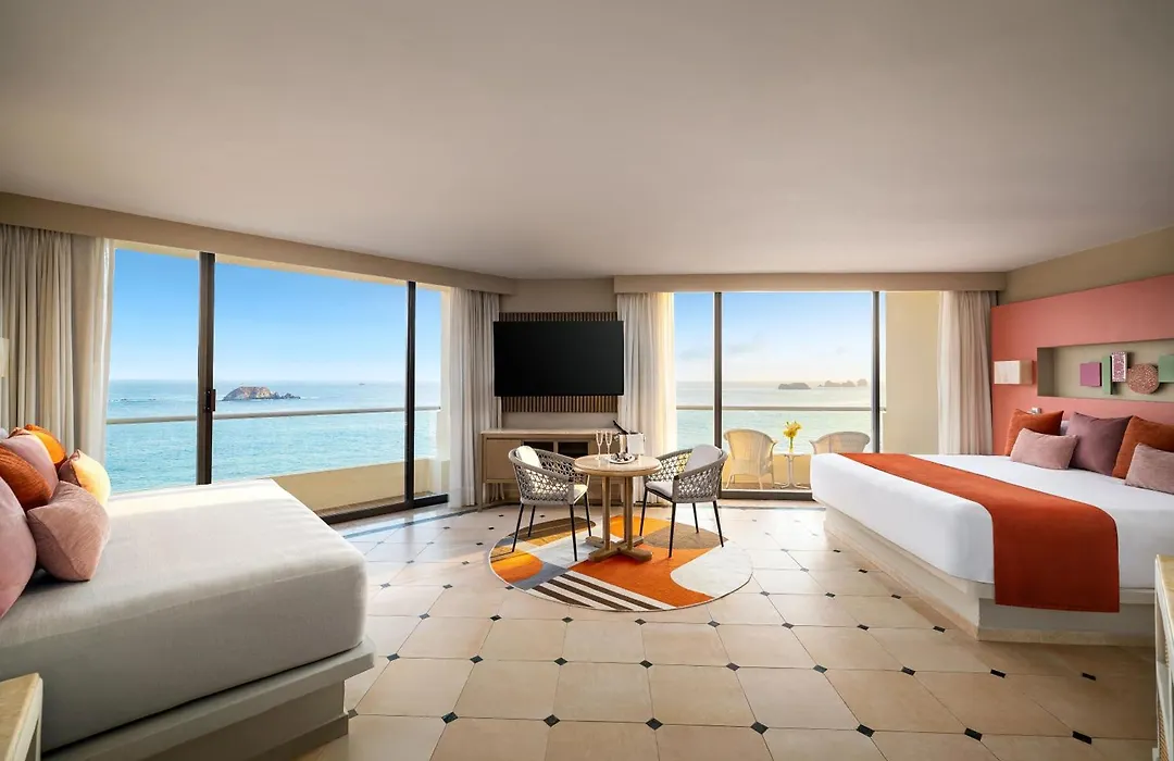Sunscape Dorado Pacifico Ixtapa offers 285 spacious guest rooms and suites, each featuring private balconies with views of Palmar Bay. Rooms are equipped with flat-screen TVs, iPod docking stations, and minibars, ensuring comfort during your stay.